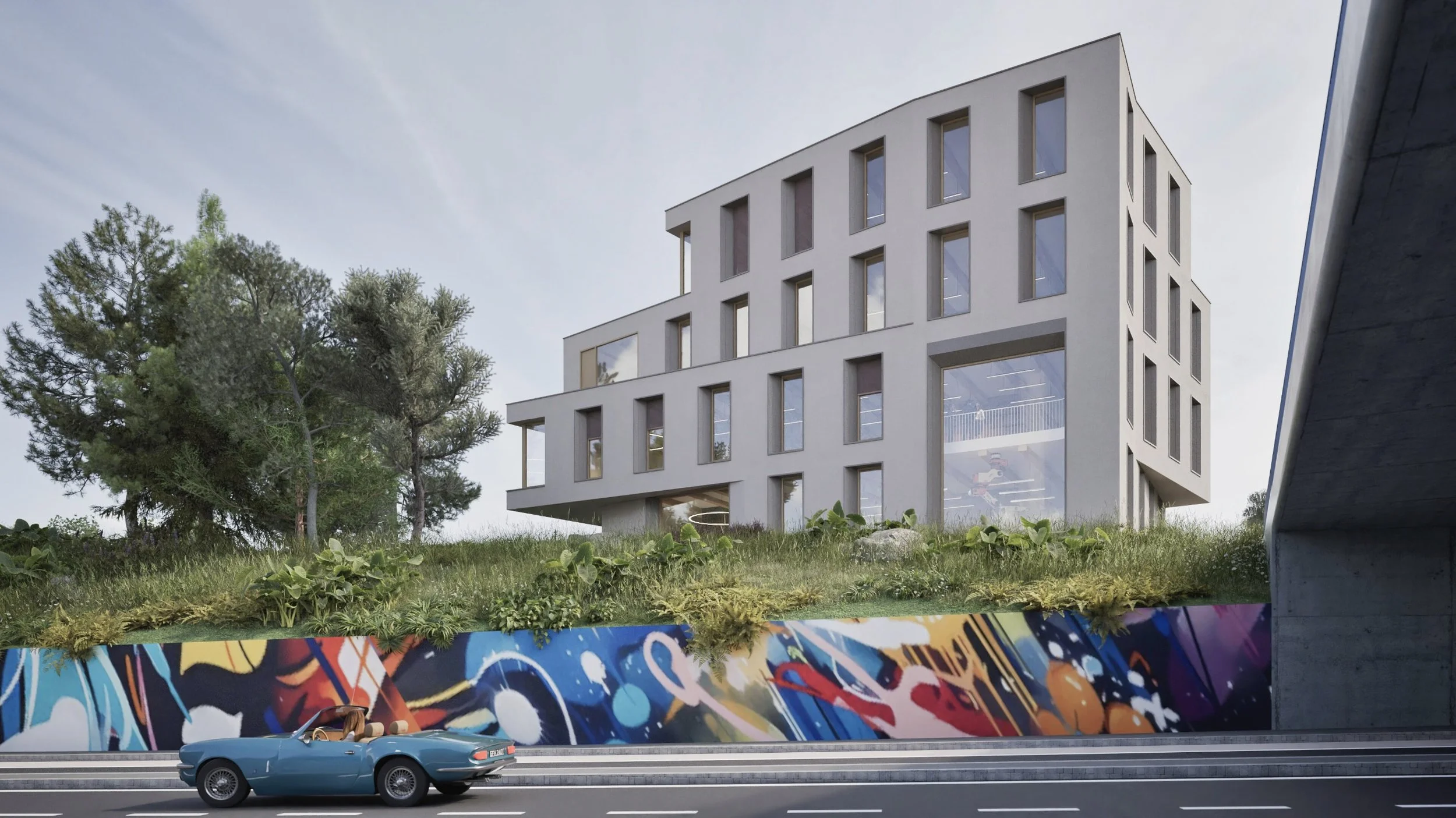Nieuwbouw onder architectuur. 4 verdiepingen met units van 300–500 m² beschikbaar.